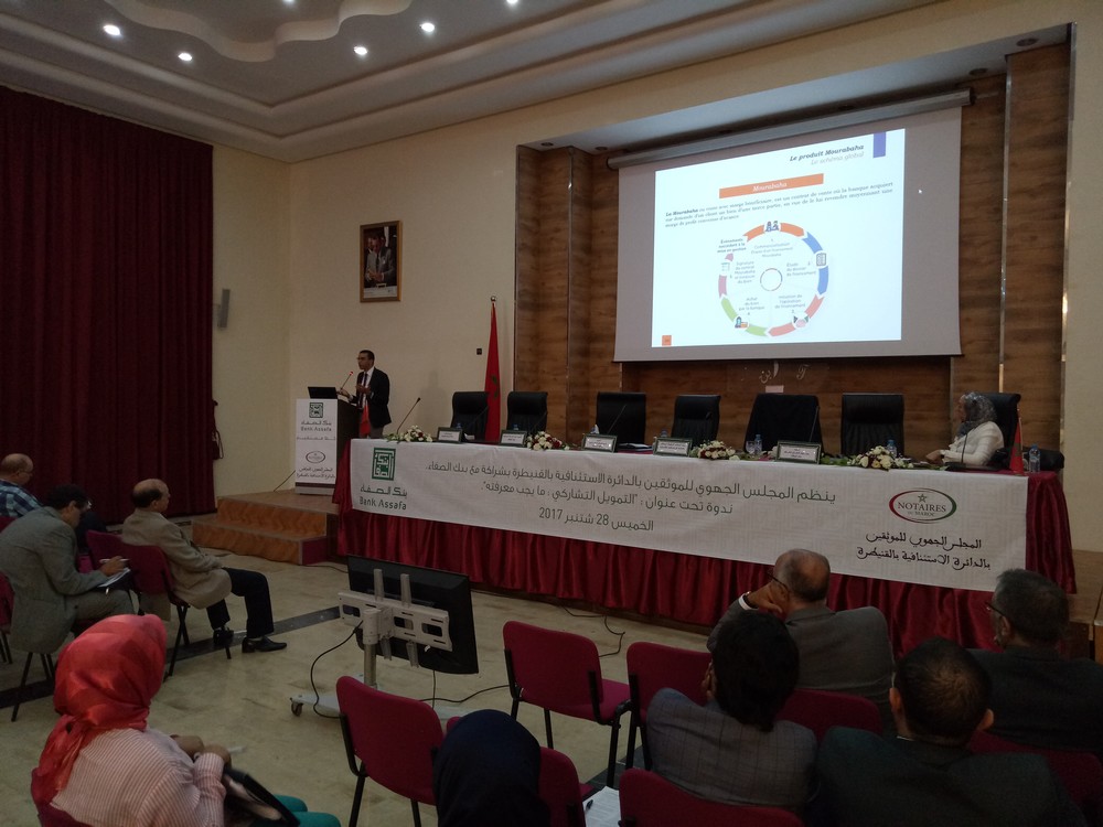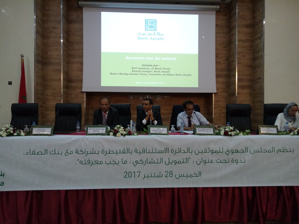 افتتح السيد طوسي زين العابدين ، رئيس المجلس الإقليمي لكتاب العدل في القنيطرة ، هذه الجلسة بكلمة ترحيب. بدوره ، قال السيد يوسف بغدادي ، رئيس مجلس إدارة بنك الصفا ، كلمة في هذه المناسبة من خلال مقابلة الموثقين في جلسات أخرى. هذه الجلسة التي أدارها الدكتور محمد وائل أمينو ، خبير في التمويل التشاركي من معهد المعالي ، سمحت للجمهور بالمناقشة حول مفاهيم هذا التمويل. أسئلة مختلفة ، تتعلق بشكل رئيسي بمنتج المرابح العقاري ، قدم إليه السيد خالد لشكر ، رئيس سوق العقارات في بنك الصفا ، إجابات ملموسة من خبرته وتعليقاته على هذه التجربة.